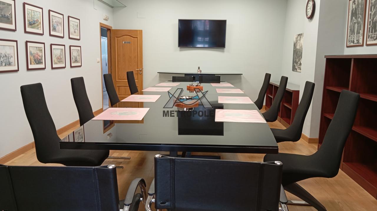 Al entrar, te recibe un amplio hall que también puede utilizarse como sala multipuestos, perfecto para recibir a tus clientes o para eventos internos. Además, dispone de tres oficinas o despachos privados, donde cada miembro de tu equipo podrá trabajar con total privacidad y concentración. La sala de juntas es espaciosa, ideal para reuniones o presentaciones importantes, con televisores o charlas interconectadas. Los suelos de piedra añaden un toque elegante y profesional a todo el local.