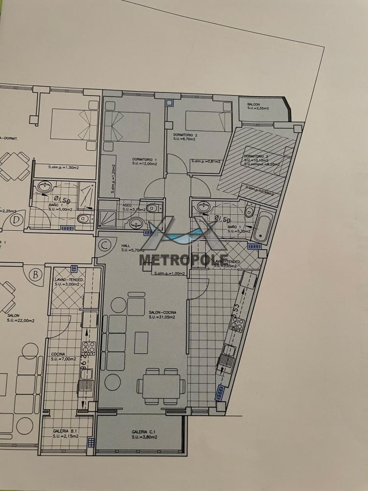 ULTIMA VIVIENDA, 95m2 del piso están distribuidos en hall, salón comedor, cocina, tres dormitorios, galería, lavandería, cuarto de baño. Amplio trastero de 15m y plaza doble de garaje