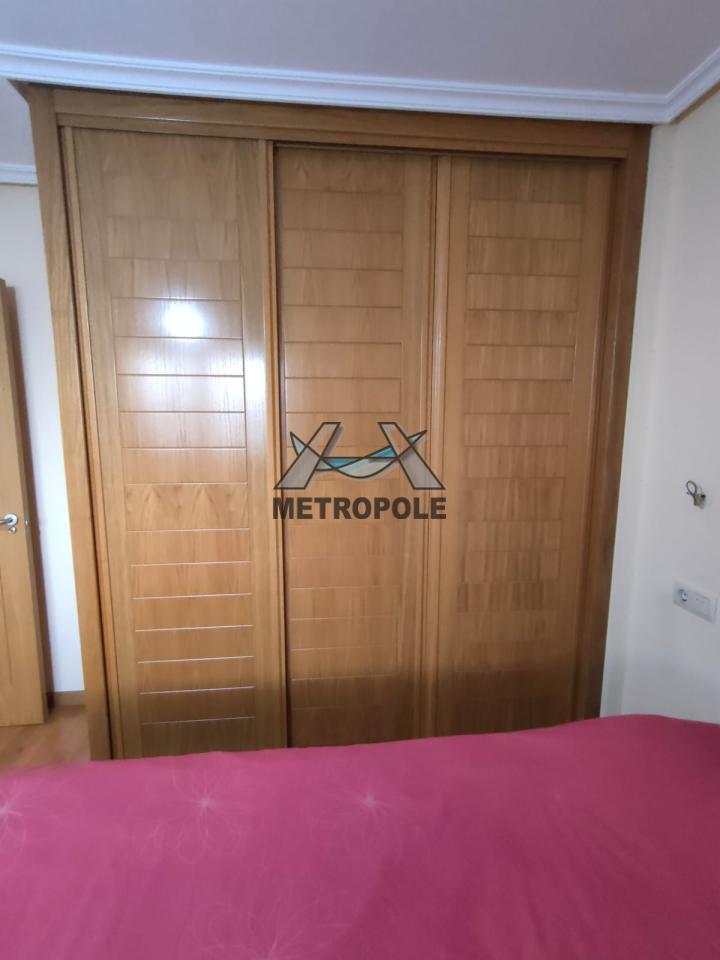 La cocina es amplia (13.42 m²), completamente equipada con electrodomésticos modernos como horno, microondas y un doble fregadero. Las habitaciones también destacan por su amplitud: la principal tiene 14.72 m² y cuenta con un armario de 4 puertas correderas, mientras que la segunda habitación tiene 10.22 m² con un armario de 3 puertas. Además, hay una tercera estancia de 6.30 m² que puede usarse como oficina, trastero o una habitación adicional, según las necesidades.
